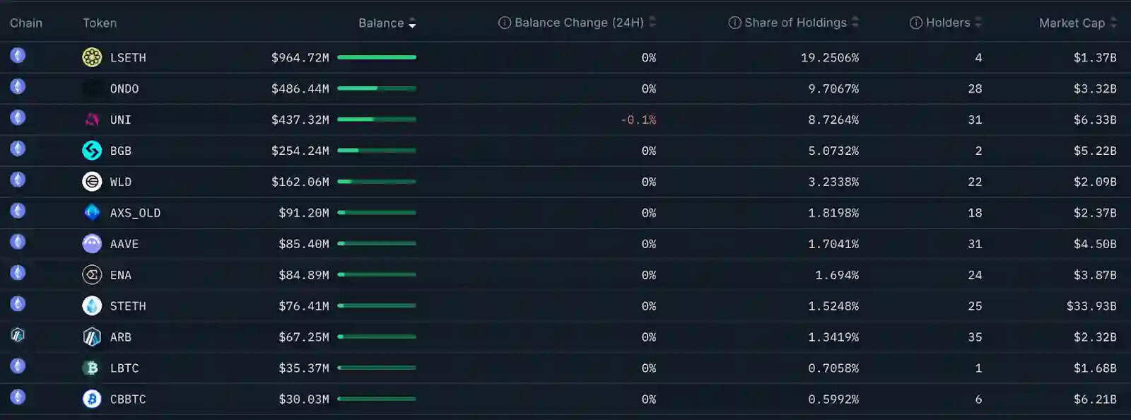 Key observations from the report state that at the top of holdings are Ethereum derivatives, namely Liquid Collective’s staked ETH (LsETH), signaling confidence of organizations in the asset and its use cases.